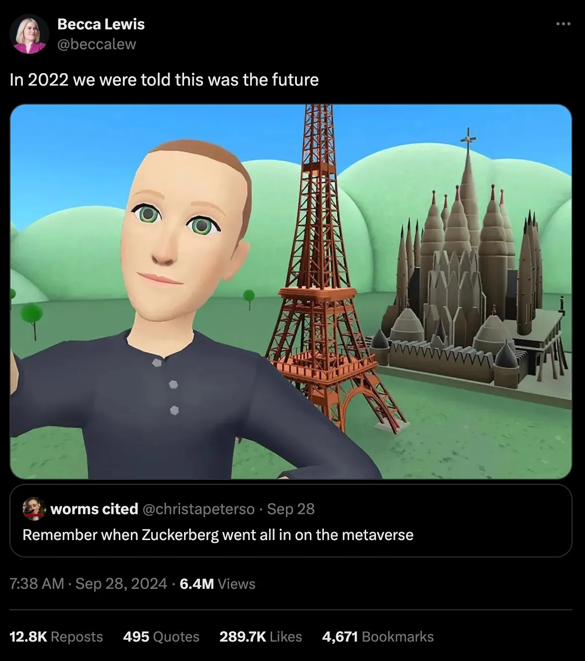 These kinds of tweets, while quite funny, are a great litmus test. People with insurgent mindsets are in awe that Zuck would continue to take such bold risks, while the incumbent mindsets laugh and say “of course that would never work” and move on. Except the 10% of the time when it does work, and then the incumbents are eaten alive.
