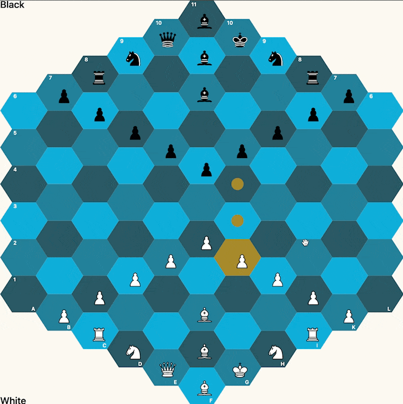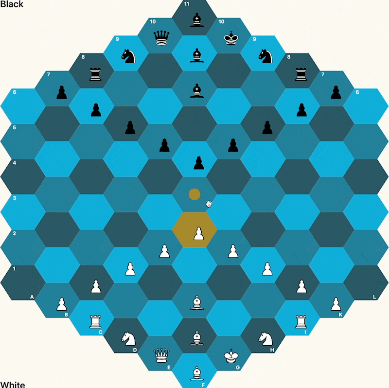 But as I began to play test, it became obvious that most people had no idea what the rules of Hexagonal chess were, and often times they’d click on a piece just to see what the legal moves are, but then change their mind and want to move another piece instead.