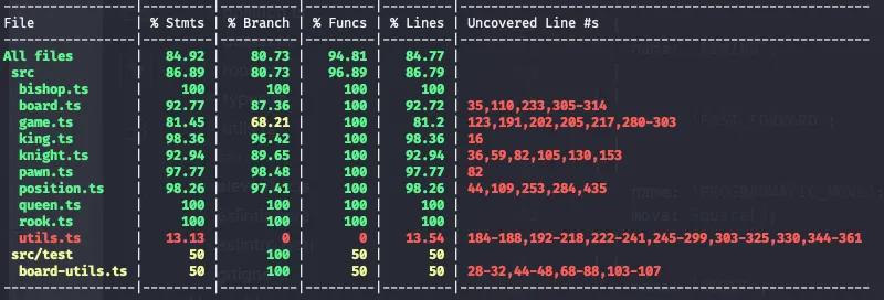 This screenshot is from when I was only halfway through the project; I was simply writing tests as I was going along, precisely because the state machine made it so easy.